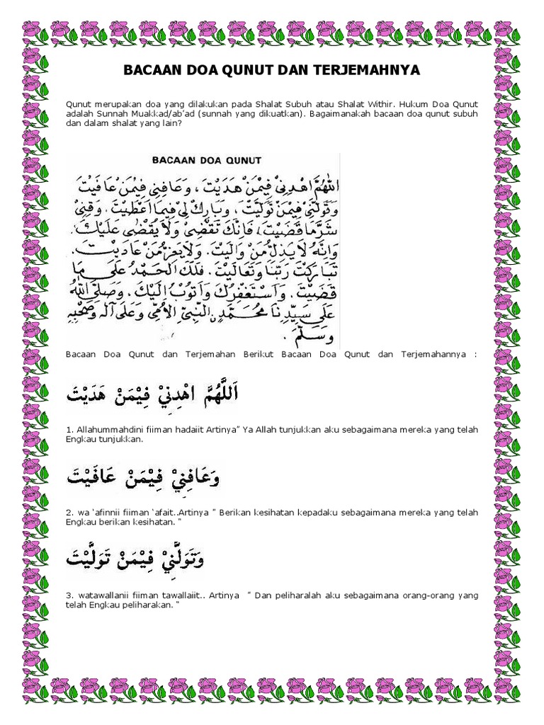 Karena doa ini secara umum akan dibaca pada. Demikian pembahasan tentang doa qunut subuh dan qunut witir. Doa qunut dianjurkan untuk dibaca saat sholat subuh. Assalamu'alaikum, saya sampaikan ucapan harapan semoga anda semua diberkati dalam keselamatan dan berada di lindungan allah swt. Sangat mudah dipraktekkan dan dihafalkan.terus semangat dan semoga lekas hafal doa qunut.